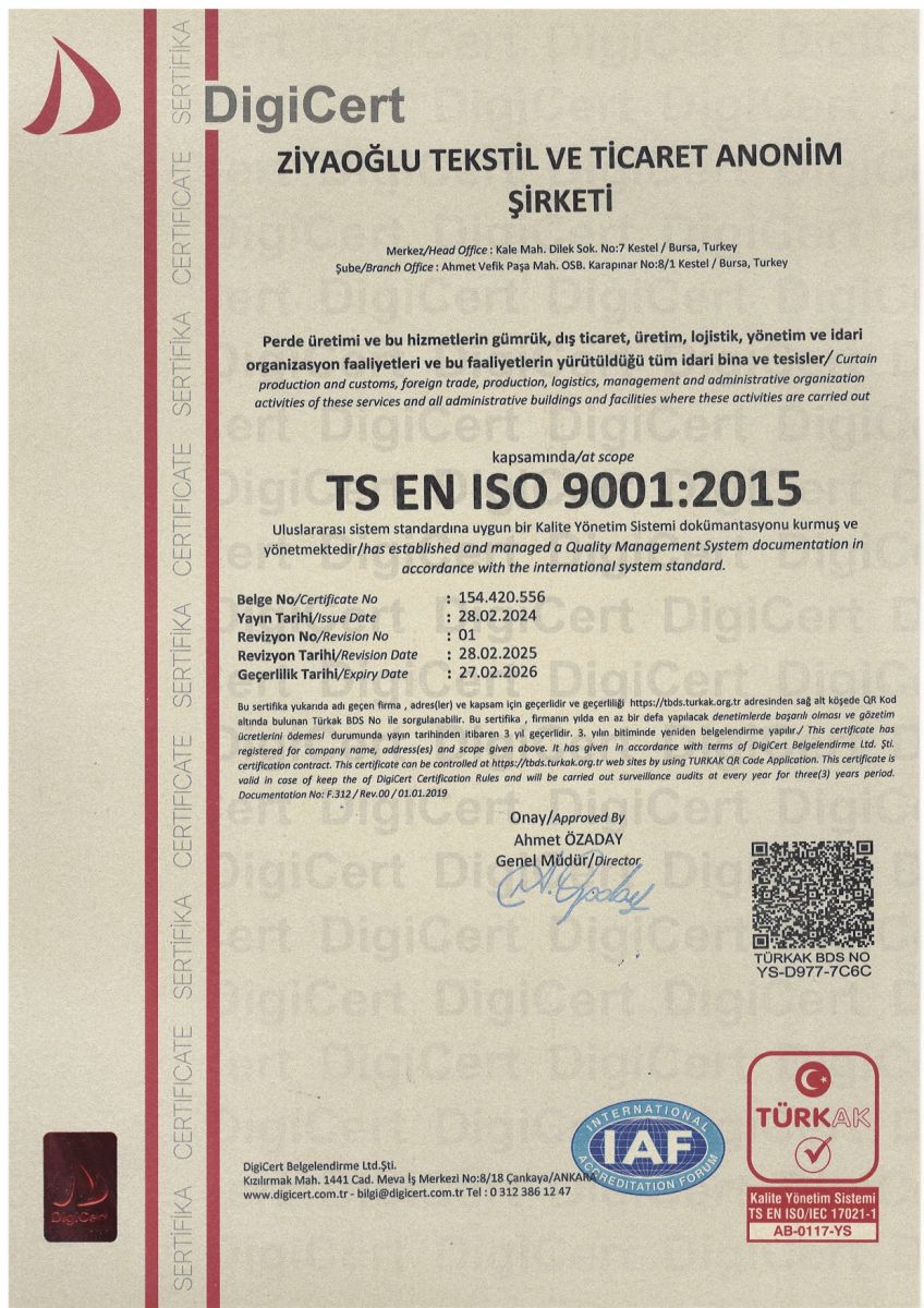 ZİYAOGLU TEXTİLE has Common Quality, Cookie, Environmental and Information Security Policies.